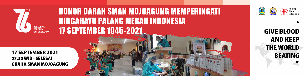 Ekstrakurikuler PMR SMAN Mojoagung bekerjasama dengan PMI Kabupaten Jombang mengadakan kegiatan Donor Darah pada tanggal 17 September 2021 Mulai Pukul 08.00 WIB yang juga menerapkan Protokol Kesehatan Covid-19.